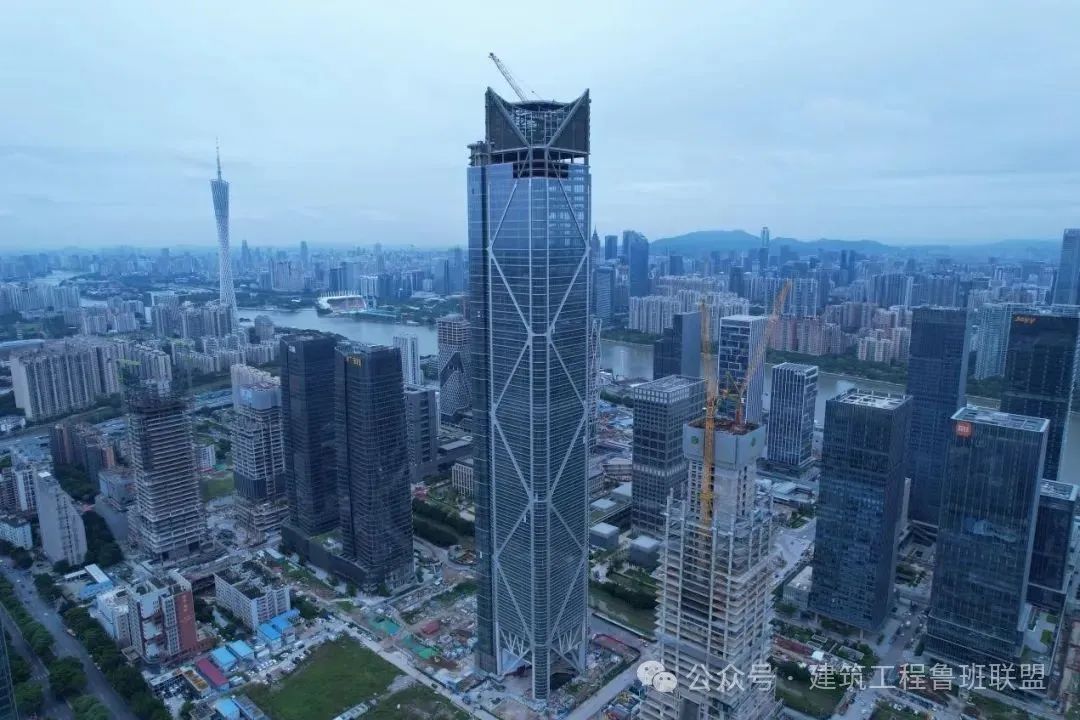 塔樓建筑高度為375.5米,采用巨型框架(鋼管砼柱)-鋼支撐+偏心支撐結構體系,主體塔樓用鋼量5萬噸。結構體系的主要特點包括:中部4根柱在第7層傾斜轉換到地面層、周邊普通柱由兩道帶狀桁架轉換、外圍抗彎框架和巨撐不在同一平面。