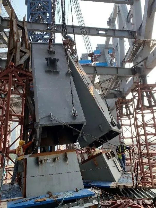 1、發(fā)明了“埋入式型鋼巨柱腳”和“埋入式柱腳安裝可調節(jié)裝置”,形成了全鋼內筒斜柱轉換節(jié)點制作和安裝技術。