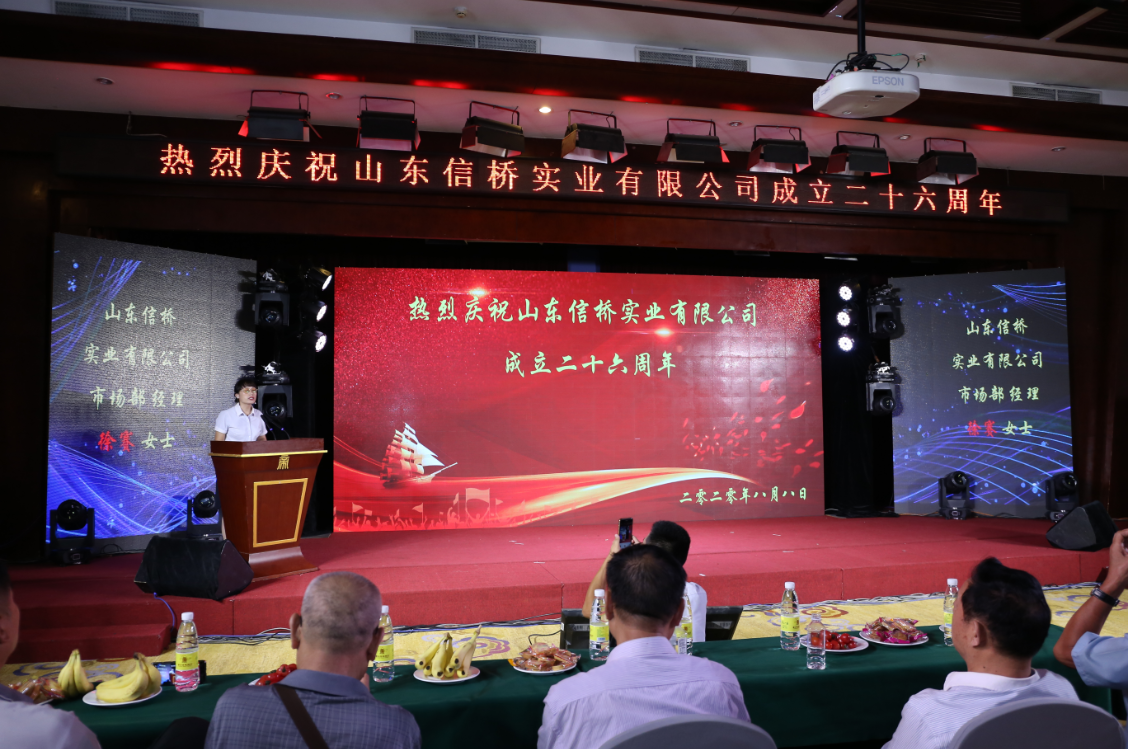 On August 8,2020, the twenty-six th anniversary of Shandong Xinqiao Industrial Co. , Ltd. was held in grand style at the Emperor Garden Hotel in Tai'an. Leaders, colleagues and friends, old and new, who have shown great love to Nobubashi for twenty-six long years, are gathered here with all the employees who have worked hard for the company, share the glory and happiness that belong to everyone! The year twenty-six of Sinbashi is the year twenty-six and the year twenty-six of development.