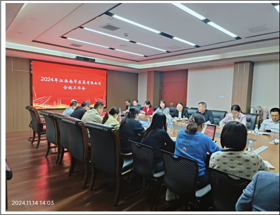 11月14日,2024年江西南華醫(yī)藥公司合規(guī)工作會(huì)議在南華公司本部順利召開。會(huì)議由南華公司合規(guī)管理總部組織、各部門和分子公司合規(guī)分管負(fù)責(zé)人出席。會(huì)議主要內(nèi)容包括,南華體系內(nèi)合規(guī)工作的交流,醫(yī)藥行業(yè)反商業(yè)賄賂政策的學(xué)習(xí)和研討,今后合規(guī)工作的安排等。公司合規(guī)管理總部陳艷部長主持會(huì)議,公司紀(jì)委書記劉建坤作重要講話。